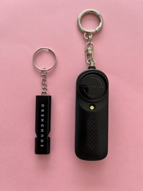 SOUNDHERO personal self-defense alarm keyring with built in light - Battery operated - Noir Black