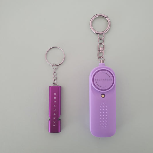SOUNDHERO personal self-defense alarm keyring with built in light - Battery operated - Lilac