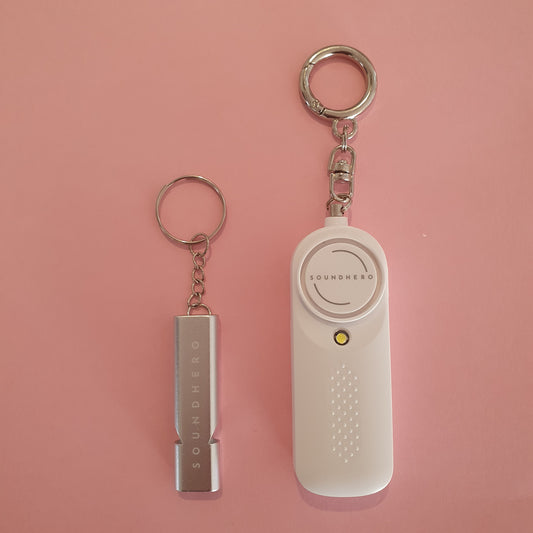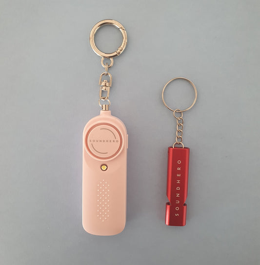 SOUNDHERO personal self-defense alarm keyring with built in light - Battery operated - Pastel Pink