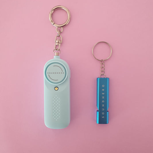 SOUNDHERO personal self-defense alarm keyring with built in light - Battery operated - Pastel Blue